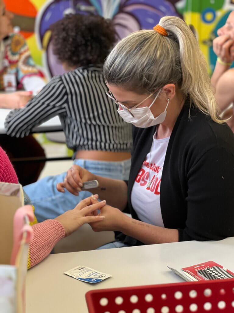A Associação Educadora São Carlos (AESC) realizou, no dia 06 de outubro, uma tarde especial de autocuidado para mulheres da Unidade de Saúde Mental Feminina do Hospital Santa Ana (HSANA). A ação integrou a programação do Outubro Rosa e reforçou o compromisso institucional com práticas de cuidado humanizado, promoção da autoestima e bem-estar emocional das pacientes.